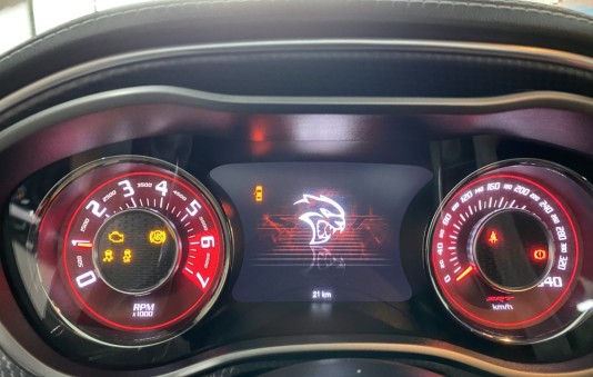 The wide fender flares, aggressive styling, and sport-tuned suspension not only give this Hellcat a menacing presence, but also enhance grip, stability, and overall control.